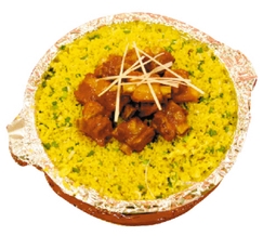 ▲沁州小米焗排骨。专家提醒吃粗粮不应是一种时尚 合理搭配平衡膳食才是健康的追求