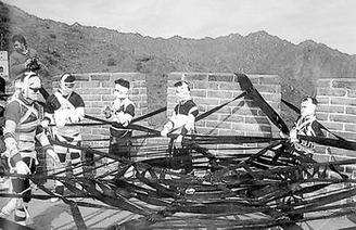 1988年10月,盛奇等人在北京古长城遗址完成行为艺术“观念21·太极”。艺术家用布把一批舞蹈学生捆扎起来,形成一个黑色的蜘蛛网。盛奇则在网中困难地打着太极。他的表演被认为暗示着传统与现代之间的鸿沟不可逾越。其中长城与太极作为传统文化的象征。