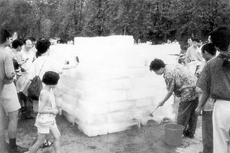 1995年,女艺术家尹秀珍在成都创作行为艺术《洗河》。本来被污染的府南河水无法被清洗,艺术家取出10立方米河水,制成冰块,再运到岸边,由艺术家和行人一起用清水洗刷了两天,最后冰块全部化掉,地面上却留下了污迹斑斑。艺术家运用洗涤的日常经验,激发公众一起表达了希望改变河水现状的心理诉求。