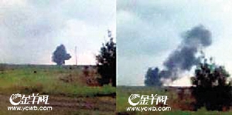 上图:“草原”村居民还及时用手机拍下了图-154客机坠毁时的悲剧情形。