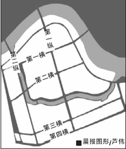 第一横:长白西路,宽40米,沿三好桥西行,是三好街的延伸,成为组织高技术产业和办公等功能的城市生活性主干道,是空间主横轴,也是科技办公空间横轴。道路两侧各设5米绿化带。