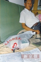 昨日,小杜的叔叔向记者讲述了小杜治病过程,他旁边摆放着病历和药品。