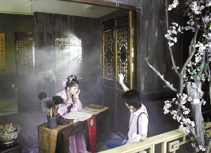一位刚刚拍摄完一套《荷塘月色》系列的伦小姐告诉记者,由于所有场景都是有实物演绎,比如像小桥流水、荷花荷叶、假山等等,甚至包括小池中的小鱼也是实物,所以一进入这样的场景,就有一种从一个时空回到另一个时空的感觉。有意思的是,一些外国客人也对这种摄影很感兴趣。