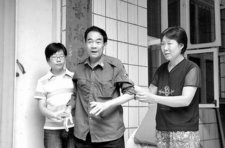 8月25日上午,记者在洛宁县老城区找到李顺友的家,红砖砌成的小院内,绿色植物扯出很长的藤蔓。老李的妻子慌里慌张地走到丈夫跟前,从一张藤椅上扶老李站起来(如图)跟记者握手,当记者的手伸至老李面前时,他大睁着双眼却没有摸到记者的手——老李失明了!陪同的公安局民警事先并没有介绍他病得这么严重,此情此景让记者不禁潸然泪下。