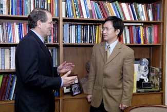 布罗迪说,上任10年来,他多次访问中国,寻求扩大与中国的合作,这是他学习中文的主要动力。他说,霍大与中国的关系非常密切。首先是霍大有许多中国留学生,华裔学生也非常多,可能占到学生总数的20%,他们的表现都非常优秀。有一位来自中国北京的留学生名叫施文,虽然已经硕士毕业去了牛津大学深造,但2004年被选为霍大的年轻校董,任期4年。其次是霍大与许多中国著名大学展开了校际交流与合作,其中以与南京大学合办的跨文化研究中心最为成功。参加研究中心项目学习的学生学制1年,毕业时将获得两校校长共同签署的“中心”结业证书。另外,SAIS预计将于今年秋季与南京大学合办国际关系硕士班,学生两年后可以得到两校校长共同签署的硕士学位证书。