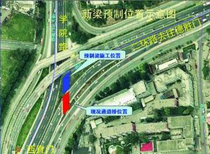 “此次施工的工艺都是首次组合在一起,而且施工的时间非常的短,这在北京历史上都是没有过的。”市政设计研究总院总工程师包琦玮说,西直门北立交桥内环通道是一个33度的斜弯,结构比较复杂。现场预制新梁、平移新梁的施工方案,将把施工对交通的影响降到最低限度。