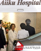 资料图片 8月16日,在日本首都东京,明仁天皇次子文仁亲王秋荻宫(左)陪同妻子纪子前往医院。 新华社/路透