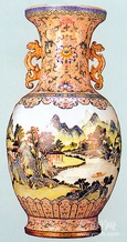 粉彩山水人物纹以双耳尊年代:清·乾隆尺寸:高75厘米专家估价:80-100万元