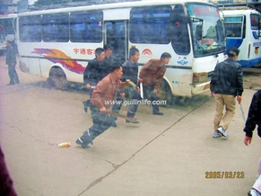去年3月23日中午约12时,在桂林汽车总站停车场发生了骇人的一幕。近20名手持长达半米砍刀的男子,围住3名青年男子似剁肉般的乱砍,被砍的男子拼命用手护住头部,在地上乱爬。很快,砍手们作鸟兽四散。现场除一名被砍男子浑身血迹拼死逃脱外,停车场还有两名男子倒在血泊中。