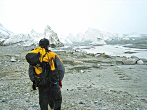记者来到了一处冰川旁,虽然还下着雪,水滴却依然吧嗒吧嗒地顺着冰川末端的冰凌和冰柱滴下,汇集成河流向地势低的地方流去,当手触摸到冰川的一刹那,凉意从手指冷到了心里。面对着巨大的长江源冰川,队员们除了激动更多的则是忧虑,随行的西宁电视台记者胡薇说,这些年青海的气候明显变暖了,雪山正在减少,2000年前,青海人一进入9月就不能穿单裤了,省会西宁夏季的最高气温也从未达到30℃,而今年的最高气温是32℃。“全球气候的变暖,使长江源的冰川在迅速的退缩,据1999年国家测绘局公布的数据显示,长江源冰川在近30年间退缩了600米,每年退缩的速度为20米。”