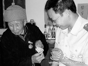 家住兴国县社富乡黄冈村的老红军孙平忠,今年已经91岁了。他穿着朴素,住的房子也是亲手建的土木结构的老房子。虽然两个儿子在当地还算有出息,各自盖了新房,生活条件也不错,但孙老还是不想给子孙们添麻烦。只要身体还好,生活能够自理,他就坚持自己过。