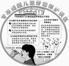 在采访中,记者还了解到,婴幼儿口腔护理不仅必须,而且要及早。婴幼儿时期是指小儿出生到3岁阶段。医生马华祥指出,宝宝乳牙萌发后,要定时喂白开水以清洗牙齿,也可用无菌纱布蘸生理盐水或凉白开水擦洗牙齿,或用指套牙刷刷牙,以后逐渐选用幼儿保健牙刷帮助孩子刷牙,尽量培养孩子刷牙的兴趣和习惯。