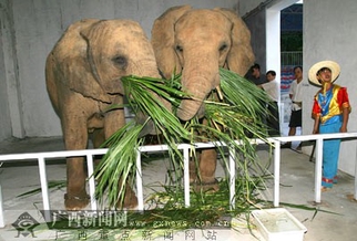 据帽合公园主任宾柳雄介绍,柳州已有六七年没有大象“定居”了,这次“非非”和“洲洲”将在柳州住上8至10年,她们都受过严格训练,可以为游人表演节目。在国庆节前,还将有2只海狮、2只海豹相继落户帽合公园动物园,届时,他们将和“非非”、“洲洲”同时为市民演出精彩的节目。广西新闻网-南国今报记者唐绍怡、钟华摄编辑:蒙卫芝作者:唐绍怡 钟华