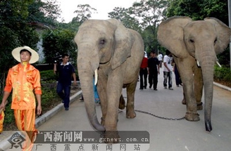 非洲象姐妹昨落户柳州动物园 要住上8~10年(图)