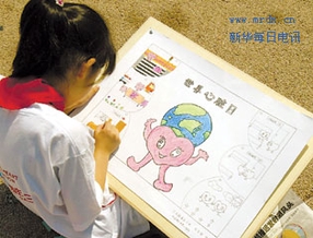 ▲9月24日,一名女孩在上海南京东路步行街举行的“世界心脏日”主题活动上参加绘画比赛。