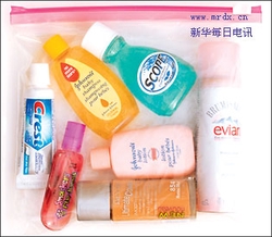 ▲这张9月25日由美国运输安全管理局发布的照片显示的是,装进透明塑料袋里的、可以带上飞机的液体和凝胶状物品。美国运输安全管理局局长霍利当天宣布,从26日开始,乘客可将在通过机场安检口后于候机区域购买的饮料等液体和凝胶状物品带上飞机。