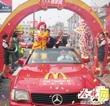 嘉宾乘车为“得来速”餐厅开业“撞彩”
