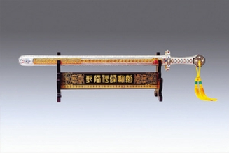 为弘扬传统文化,满足收藏爱好者的鉴赏和收藏需求,中国收藏家协会首次推出清朝“乾隆神锋宝剑”的高精度仿品。在“乾隆神锋宝剑”的高仿制作中,中国收藏家协会组织众多工艺美术大师和文物专家,参照原剑进行多次论证研讨,选择铸剑历史最长的专业厂家进行生产。高精度仿真的“乾隆神锋宝剑”用料考究,工艺精湛。