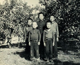 这是潘基文(中)上小学期间和他的兄弟们合影的资料照片。 新华社发