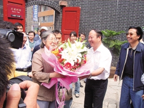 我们来到位于遵义市老城杨柳街28号的红军总政治部旧址,这里是遵义会议期间毛泽东、张闻天、王稼祥的住址,是属于遵议会址的组成部分。我们走到这个旧址,准备去感受毛泽东等领导人当时的生活情况,可是还没等我们进去,便发现在旧址附近围着很多人,我们等待片刻后看见几位老人从一辆巴士上蹒跚的走下来,其中有一位老奶奶正被一位年轻的女士搀扶着。向人打听后,我们才知道原来这位老奶奶是毛泽东的女儿李敏,而搀扶着她的那位正是毛泽东的外孙女孔东梅。而一起前往的还有两个曾经在这里工作的老馆长。这次长征70周年,李敏特地携女儿前来看望父亲曾经生活工作的地方,我们也跟随着他们一起进入旧址感受历史。