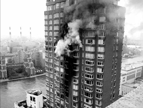 埃德华德·瑞安是第一批抵达现场的消防队员,他描述当时的情形说:“我们刚把车子停在路边,就看到一大群人惊慌地迎面跑过来,不少人一边跑一边回头看身后那座已经火光冲天的大楼。”