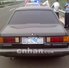 在沪蓉高速公路65KM处,该车被民警拦下。这台荆州籍小轿车的前后号牌上,中间两个数字被光碟遮挡,变成了一个大大的“0”字。