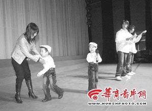 弟弟怯场要下台,哥哥忙着来“救场”■本报记者张墨寒摄