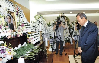 下届联合国秘书长潘基文22日来到崔圭夏的灵堂,为旧日长官祈求冥福。