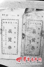 在展柜的一角,一种用普通白纸印制的参观券引人注目。