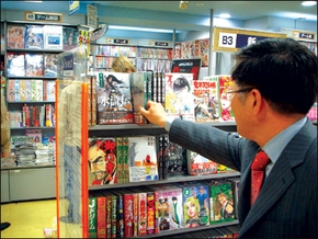 在东京银座的一家漫画书店里,琳琅满目的漫画堆满了书架。其中,中国原创漫画——《水浒传》被店主放在了相当醒目的位置。一位日本的漫画迷说:“这部书的画风十分有力,我觉得图片把故事表现得活灵活现。”