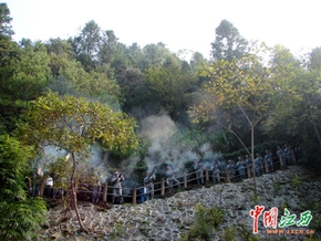 10月28日,重大革命历史题材电视连续剧《井冈山》开机仪式在井冈山革命烈士陵园举行。中央纪委、中央电视台、解放军总政宣传部、江西省委宣传部和南京军区政治部五家出品单位向革命死难烈士敬献花篮。(中国江西新闻网记者 沈德森 摄)