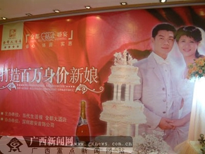 广西新闻网南宁10月29日讯(记者苏熹)10月29日晚,由当代生活报、金都大酒店、深圳君安珠宝首饰公司等合办的广西第一个“百万身价新娘”婚礼在南宁市金都大酒店举行。