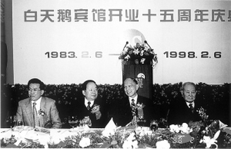 谈起霍英东投资兴建白天鹅的初衷,敏姐为记者打开了一轴清晰的历史画卷:1978年,中国旅游部门就制定一个计划:在北京、上海、广州、南京等地兴建八大中外合资酒店。为了实施这个计划,当年,廖承志特意邀请了一大批香港工商界的巨子赴京,其中有利铭泽、霍英东、李嘉诚、冯景禧、胡应湘、彭国珍等人。霍英东对八大酒店计划非常支持,主动要求参与这八大酒店的投资建设。霍英东最初想到的地方是北京和上海。但他后来想到,广州虽无太出名的名胜古迹,但向来港澳和华侨旅客较多,一年两次的中国商品出口交易会又在那里举行;加之广东毗邻港澳,在改革开放方面会先走一步,有利条件较多。于是,霍英东改变初衷,决定在广州兴建。