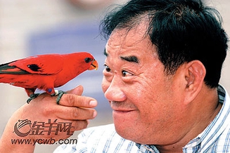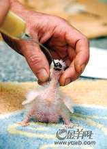 阿kent来自香港,养鹦鹉已经有十来年的历史了。几年前,出于对鹦鹉的热爱,他特意到新加坡学习养鹦鹉的先进技术,回国后创办了“欢乐鸟园”。“在香港,朋友们都叫我雀痴。”在育雏室里,阿kent打开孵化箱,用手掌捧起一只刚刚出生不久的雏鸟,用一根针筒状的饲养器灌上自制的“独家”营养液,轻轻地注入小鹦鹉的嘴里。