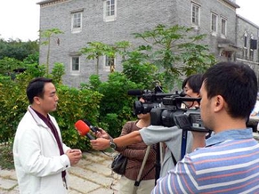 开平市旅游局局长接受记者采访。