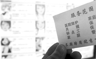 负责人说,前几天,有个女的才30岁左右,但不凑巧的是,人家已经找到活了。这名负责人见小李不满意,忙说:“我们是经过工商部门登记注册的,客户满意就是我们的宗旨。只要遇到合适的,我们会随时和你联系。”