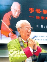 据中山大学古文字学者曾宪通教授介绍,饶宗颐先生从上世纪50年代起就开始研究楚帛书,但是直到1964年,才首次在纽约一私人收藏者处见到了楚帛书原件。在这张三四十厘米见方的丝织绢巾上,中间绘有近千文字,周边绘有四色树木和十二色彩图,是图文并茂的古代墨书真迹。饶先生根据亲眼所见的原物,撰写了《十二月名核论》,支持国内学者李学勤先生的观点,此后又有多角度的论著,均有新的建树。