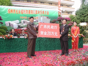 据悉,广西民政厅和梧州市人民政府分别为福利院60周年庆捐赠了20万、10万贺金。