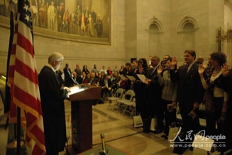 人民网华盛顿12月15日电记者唐勇报道:美国国土安全部今天在此间高调举行公民宣誓入籍仪式,来自35个国家的35名外国公民通过该仪式获得美国公民身份。