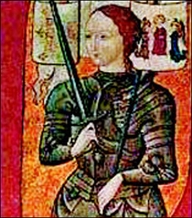圣女贞德是一位来自法国东部洛林地区的牧羊女,她化装成男子参加了战斗,据称她在打击英国和勃根第公爵军队的时候听到了三位圣人有关解救法国的指示。她最终被俘获并被卖给英国人,英国人以女巫罪判处她火刑。圣女贞德1929年被封为天主教的圣人。维希法国和法国抵抗运动在二战期间都将圣女贞德作为他们的事业的国家象征。(毕远)
