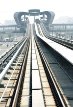10时54分:列车再次启动。从新造站出发大约2公里就是地下巨龙腾空而起之处,地铁专家提醒记者:“马上就进入高架段了!”