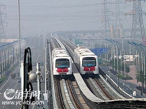 上图:昨日下午,记者在四号线看到,两辆列车正在高架轨道上调试。新快报记者王小明/摄