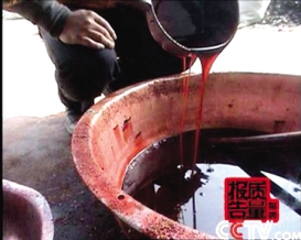 在王堡村的一家辣椒面加工厂,记者目睹了用“油红”加工辣椒面的全过程。200多斤的低等级辣椒经过添加油红”一番特殊加工,再掺入同样用“油红”染料染过色的玉米皮,就变成了450斤颜色鲜艳的辣椒面。按照这位老板的计算,这种辣椒面每斤的成本不足3元钱,但是在市场上的批发价每斤至少在5元钱以上。