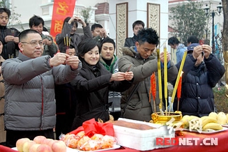 (湖南经济电视台台长吕焕斌和副台长周雄为《走过路过莫错过》开机揭幕。)