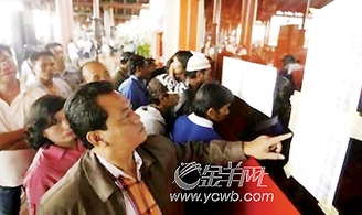 图:人们焦急地查看乘客名单。