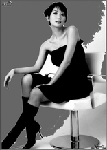 画中林志玲淡妆、长发飞扬、一袭露肩紫色长裙、赤着双脚;左手托腮,右手自然地放在身体一侧,慵懒地斜躺着。“我原来设想的布局很复杂,等到见到她本人后,亲切、干净,让人感觉她的内心也非常纯净。于是,我将整个背景处理成了雪白,她整个人如同在空中飞,有一种流动感。”刘小东说。