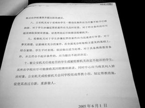 “我们处理案件非常尊重学校的意见。比如某高校的校规就规定,凡是盗窃200元以上或者拘留3天以上的就要开除学籍。这样一来,办案民警就很为难,为了不轻易因为我们毁掉孩子们受教育的机会,公安部门一般情况下,不采取限制学生人身自由的强制措施。”南京市栖霞区公安分局亚东派出所所长何建忠说。