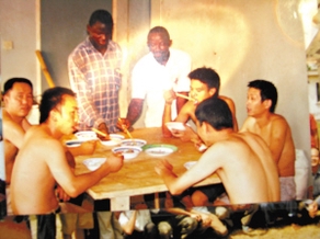 在国外的生活条件相当艰苦,但何文明却认为,“条件还可以”。他们住的房间里没有空调,工人们都在地上打地铺睡觉。房子里没有桌子,他们吃饭都蹲在地上。“一天三顿都吃肉,但全是冻肉,没有味道。”