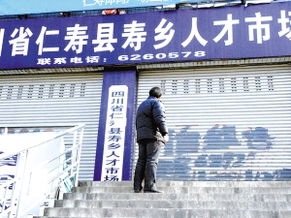 1月9日,一向热闹的仁寿县劳动力市场突然冷清了许多。上午10时,在仁寿县劳动与社会保障局的劳务大厅内几乎看不到一个前来咨询的人。在县城的新车站旁的一家私人开设的劳务市场索性关着门,上面贴着一张告示,“接上级通知,全体工作人员到省里学习。由此带来不便,深表歉意。”