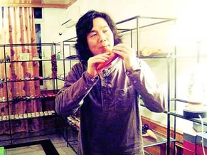 孙建刚出生于宁夏回族自治区,原先学习的是陶瓷专业,后来又自费前往山东艺术学院学习雕塑,几经辗转来到厦门。他业余时间非常喜欢音乐和旅行,不管是青海湖边还是麦积山石窟下都留下他倾心吹奏葫芦丝的身影。不过,葫芦丝的音色动听,却不易携带,这也是孙建刚对陶笛“一见钟情”的主要原因。出发前随手往行李袋里一塞,就可以在风景如画的名山胜水中自娱自乐。